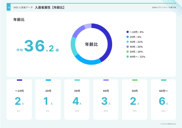 各部屋の入居者に関係する情報をまとめたカルテです。クレームや督促の情報とも紐付き、チャットにより各入居者からの問い合わせにも対応可能です。
